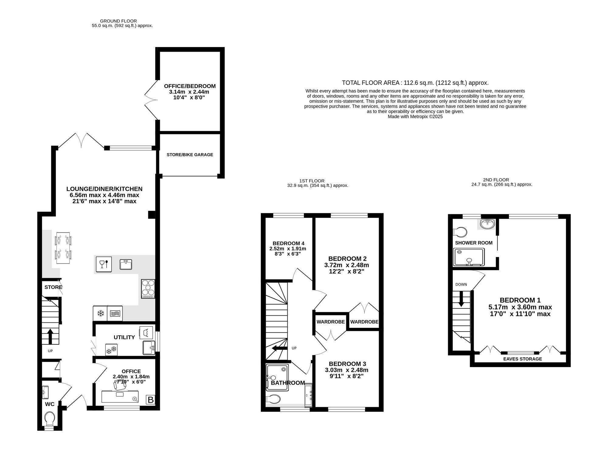 1st floor of family bathroom, 2 double bedrooms and generous single bedroom.